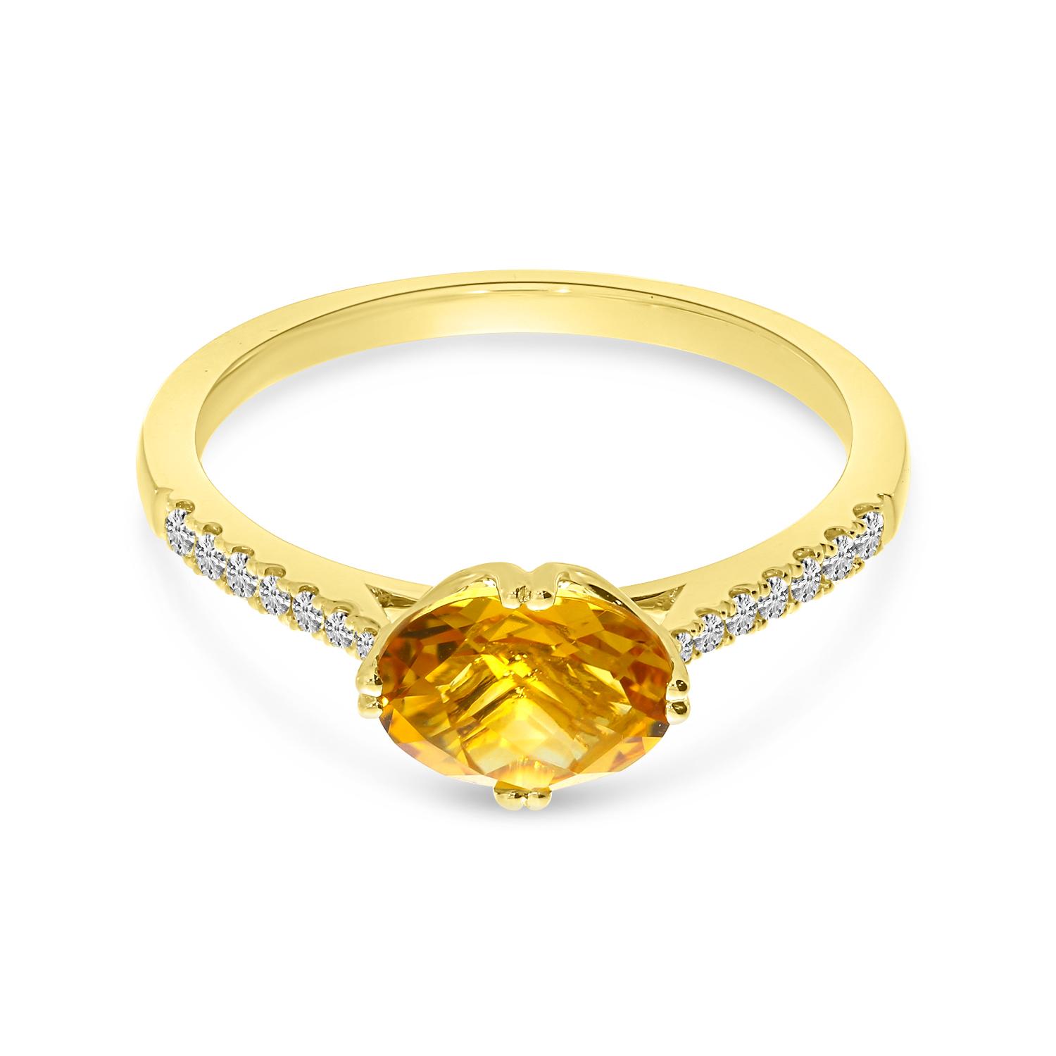 14k Yellow Gold 8x6 mm Oval Citrine and Diamond Ring