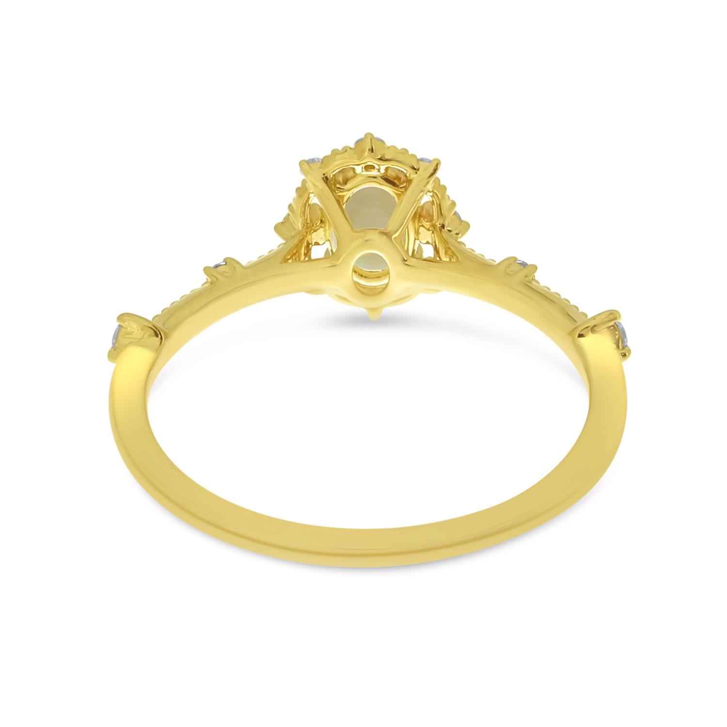 14K Yellow Gold Oval Opal and Diamond Semi Precious Ring