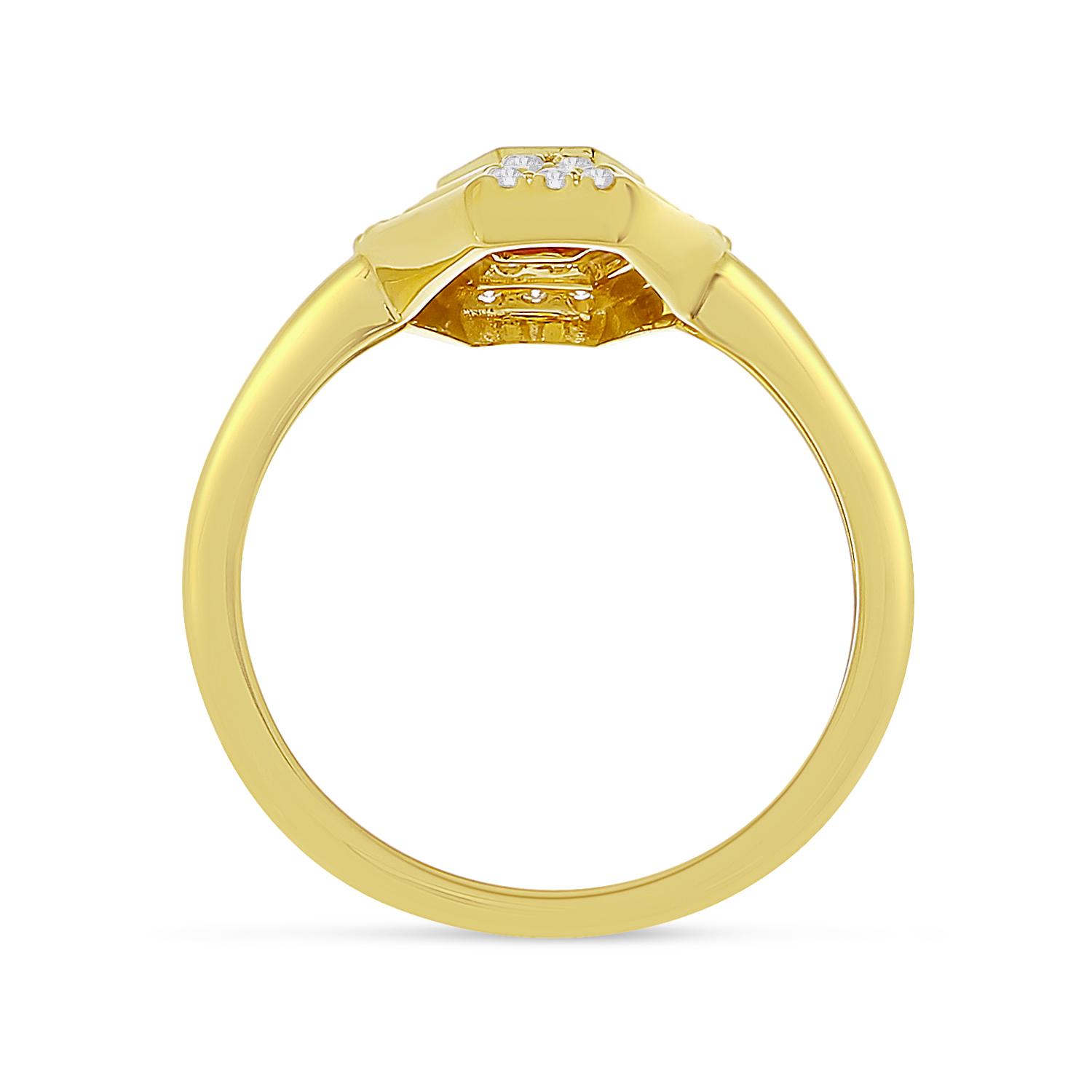 14K Yellow Gold Oval Ruby Precious Hexagon Art Deco Ring