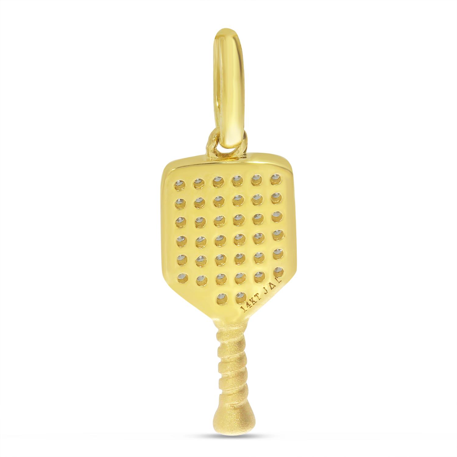 14K Yellow Gold .15 ct Pave Diamond Pickleball Racket Pendant
