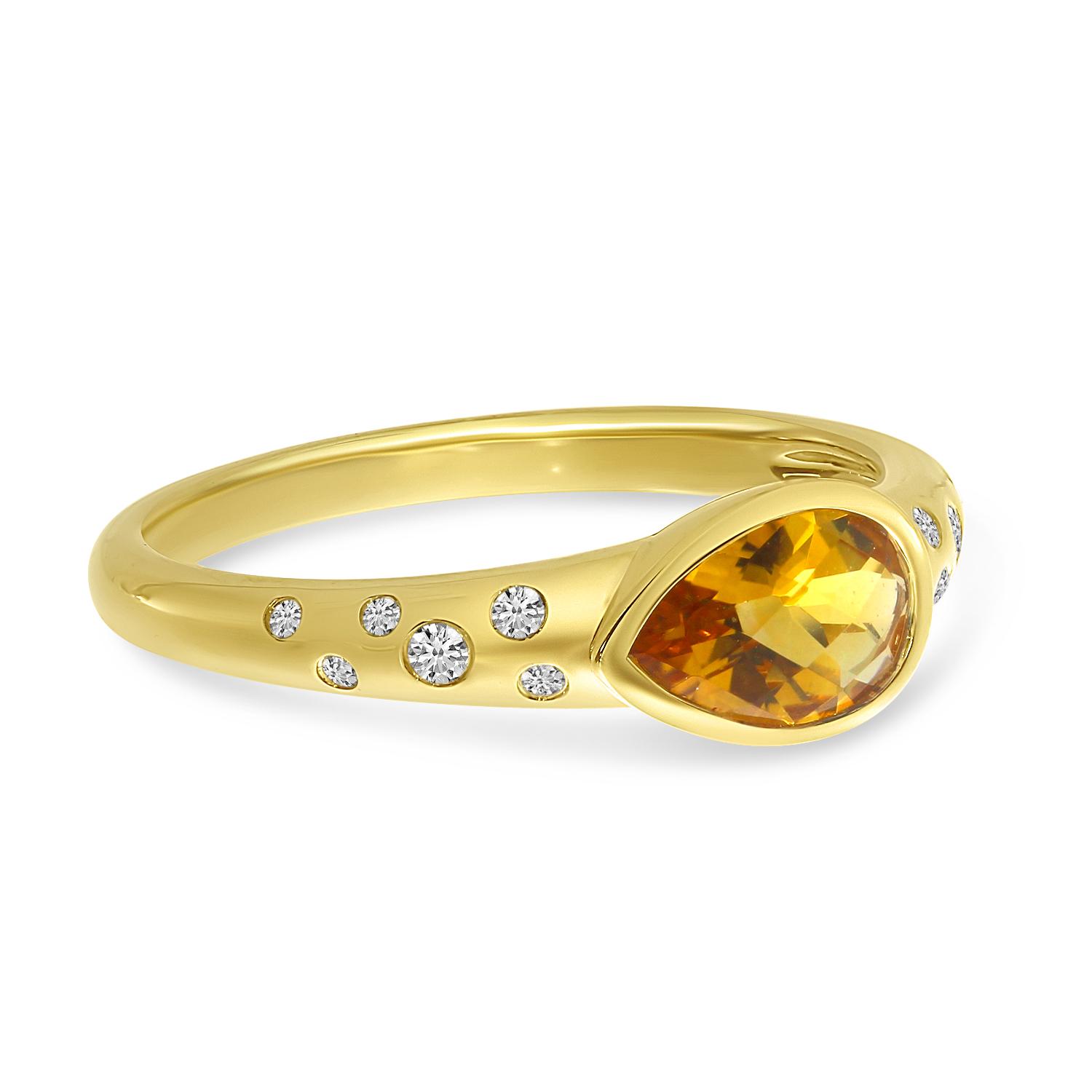 14k Yellow Gold 8x5 mm Pear Citrine And Diamond Band Ring