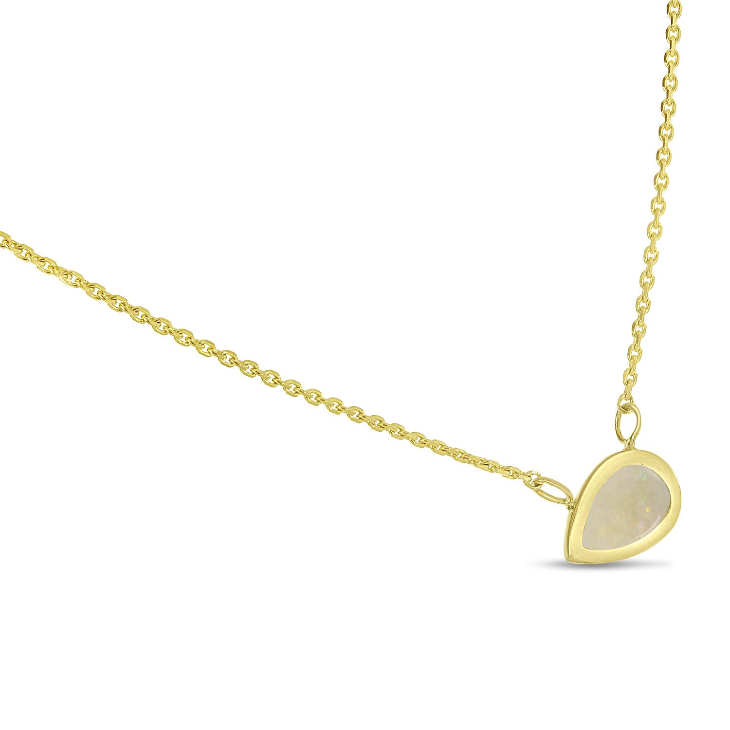 14K Yellow Gold Pear Opal East to West Birthstone Necklace