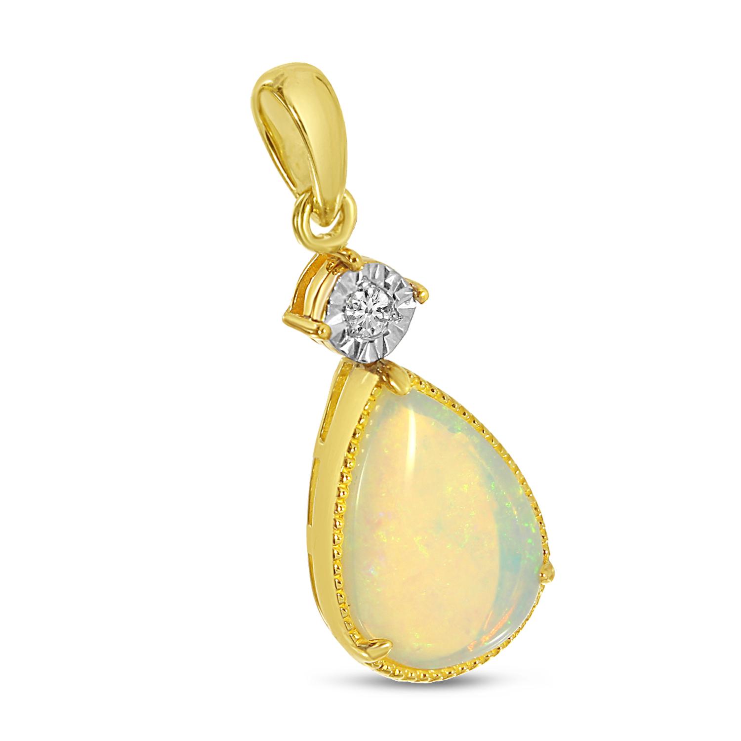 14K Yellow Gold Pear Opal Pendant with Diamond Millgran Details