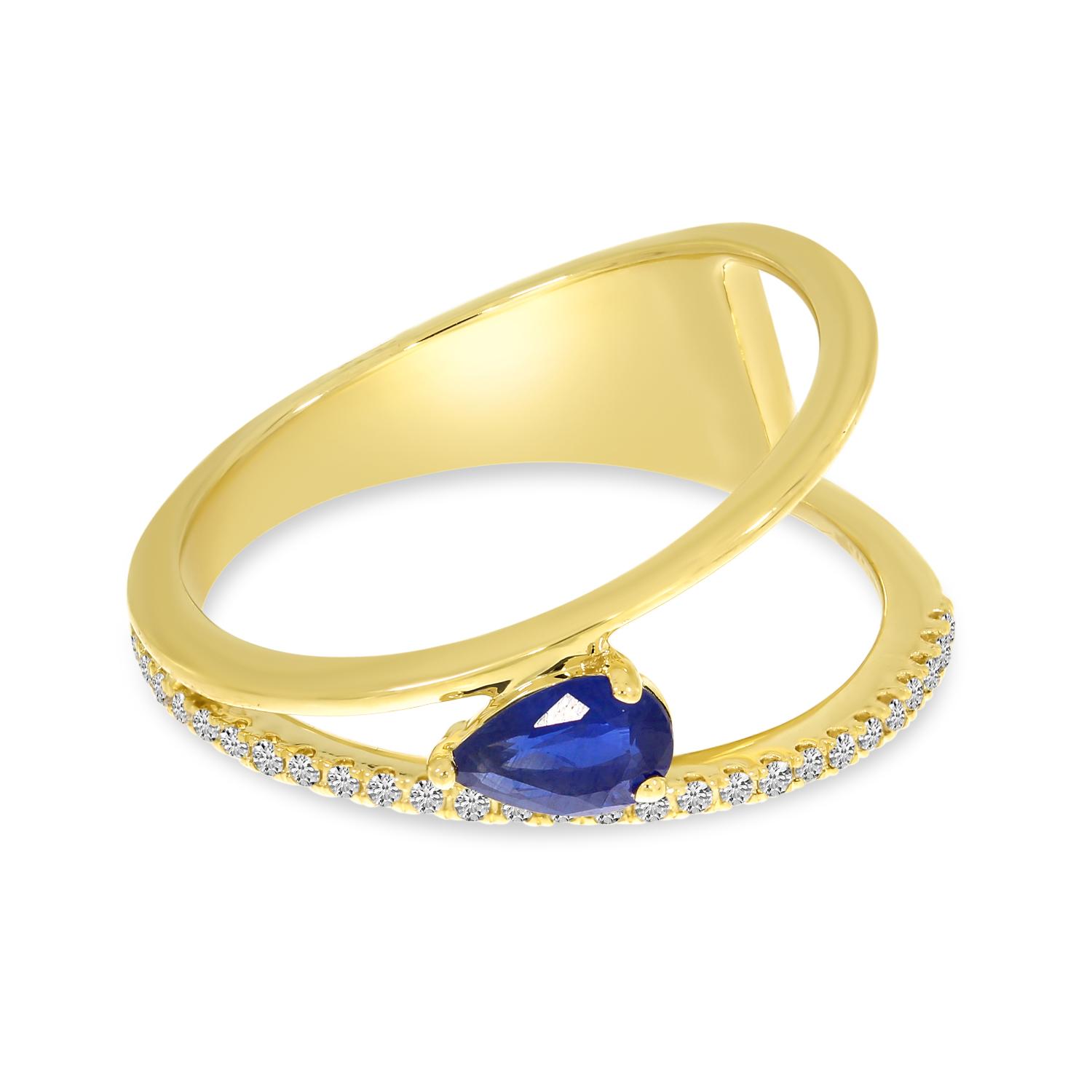 14K Yellow Gold Pear Sapphire and Diamond Precious Ring