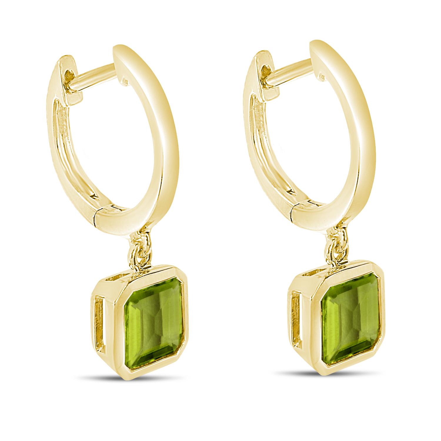 14K Yellow Gold Peridot Huggie Earrings with Gold Halo