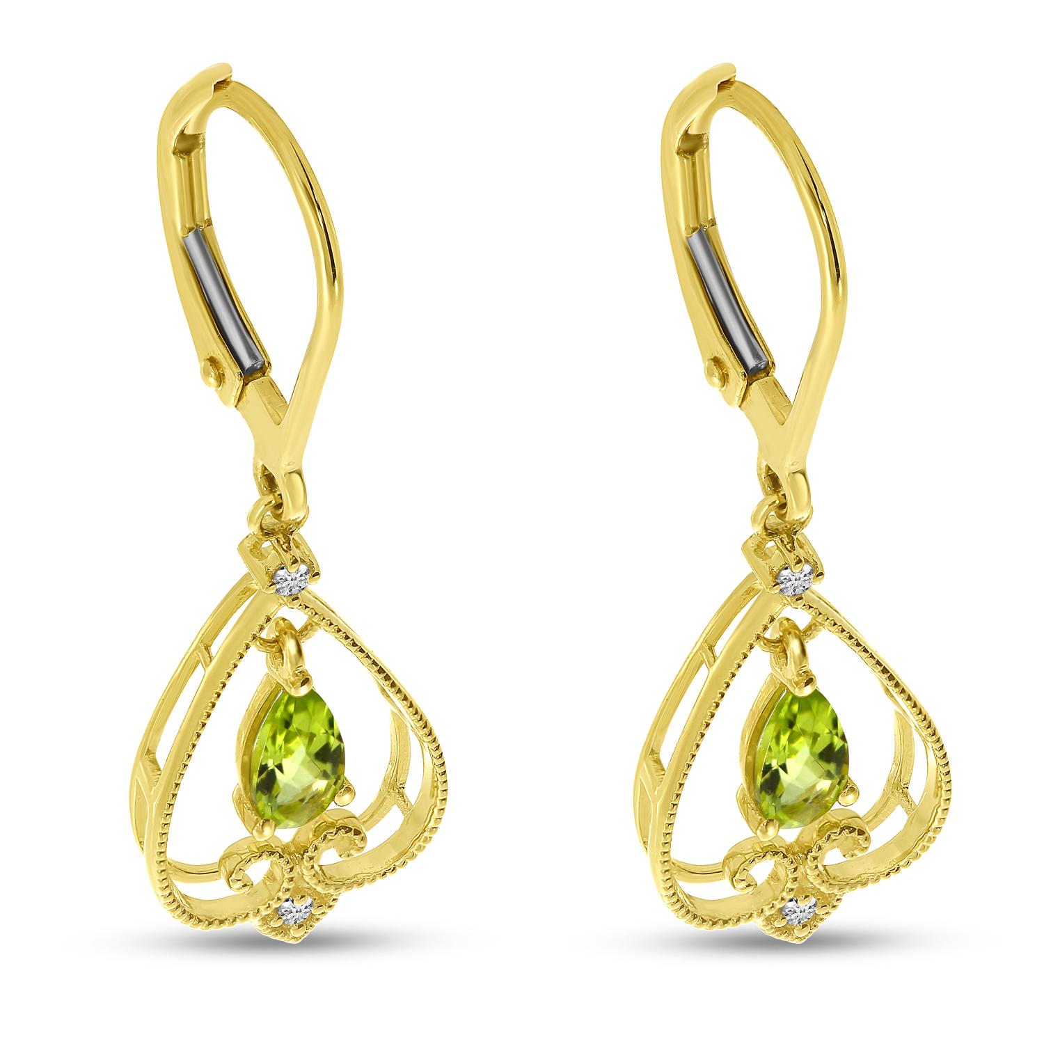 14K Yellow Gold Peridot Pear Drop Filigree Earrings