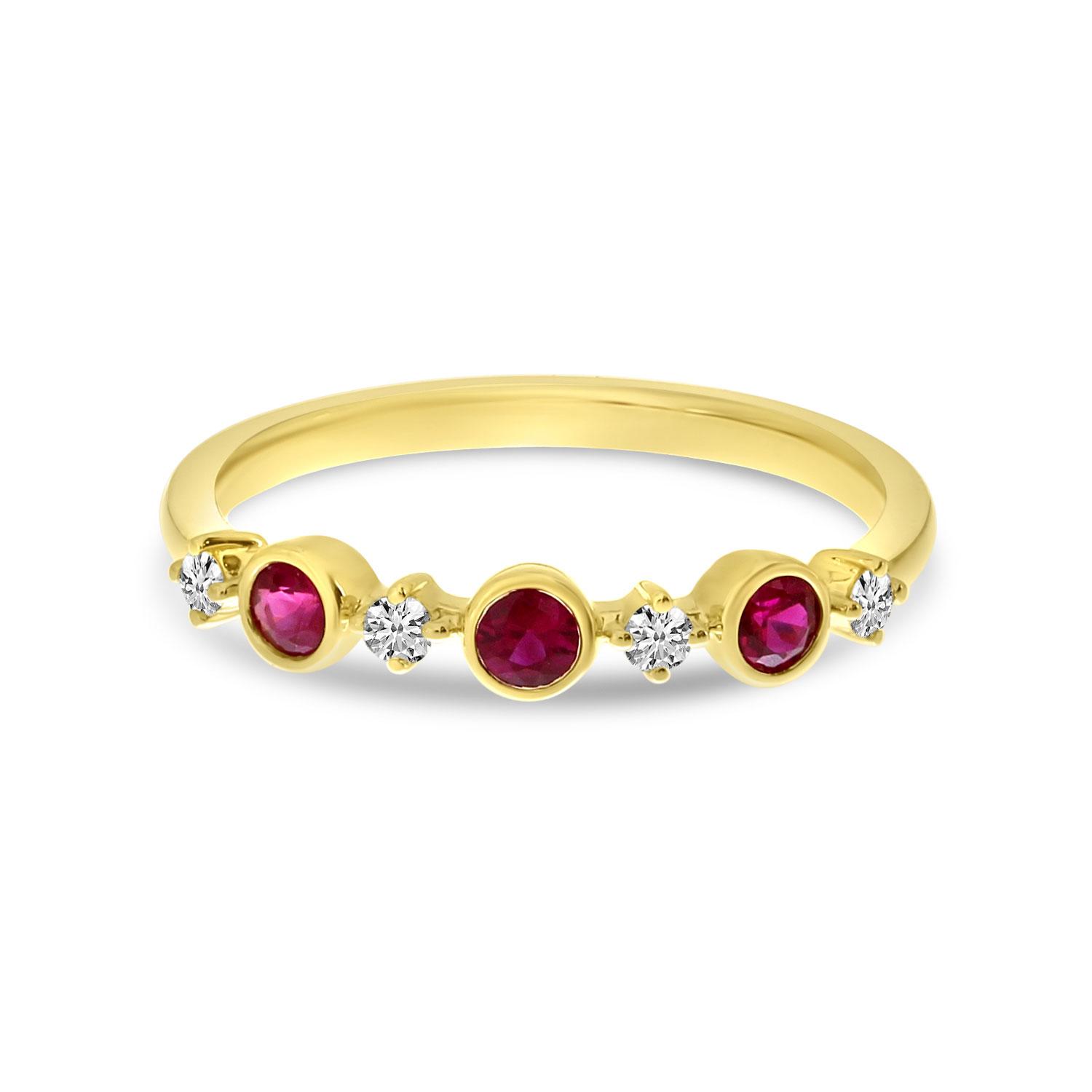 14K Yellow Gold 2.7 mm Precious Ruby and Diamond Band