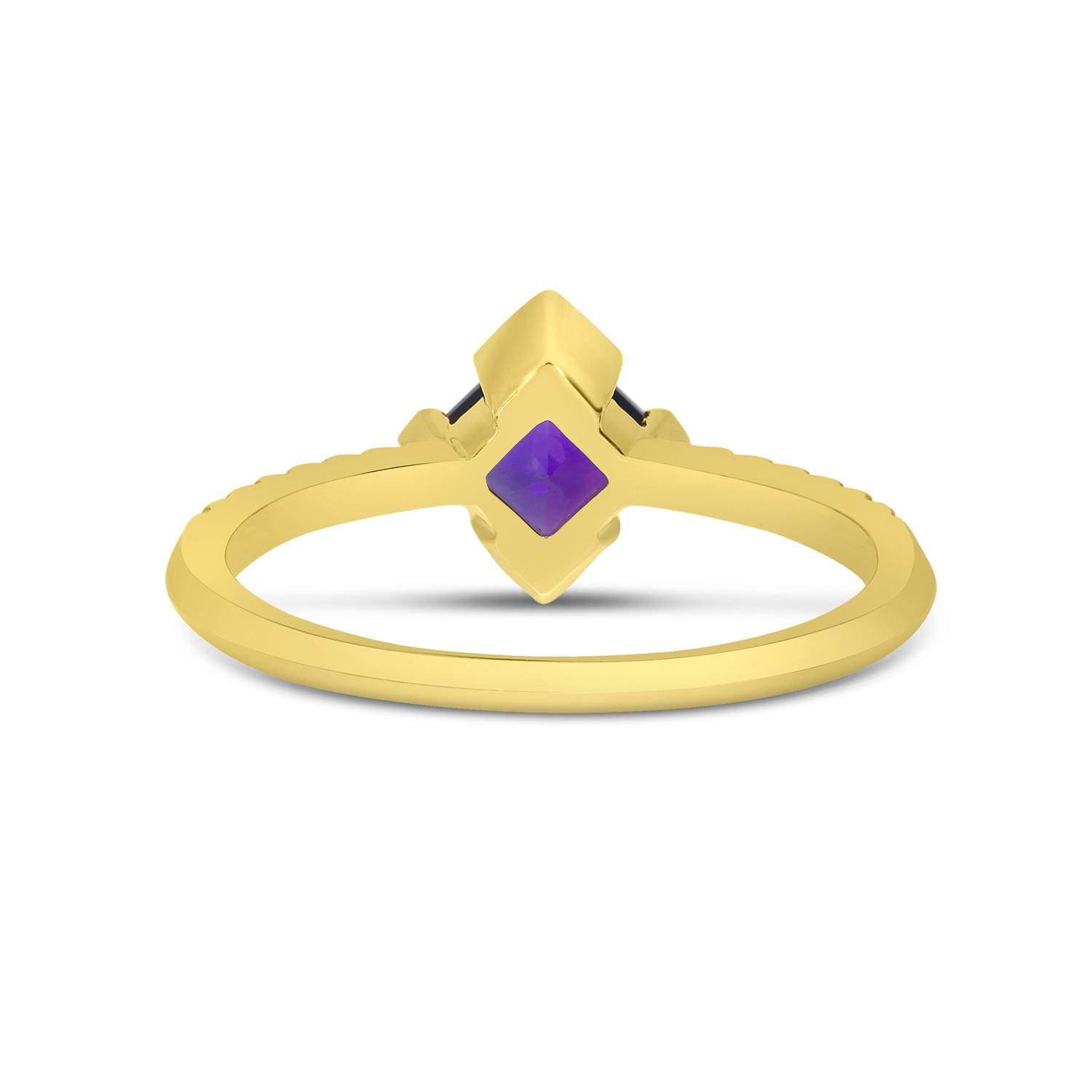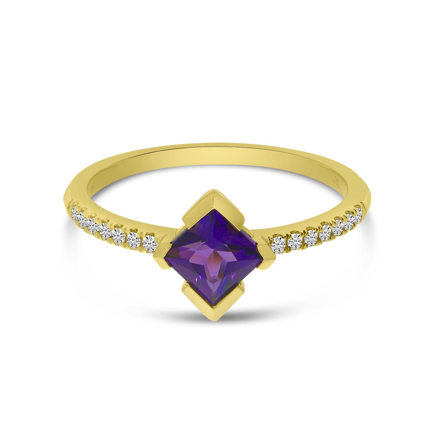 14K Yellow Gold Princess Cut Amethyst and Diamond Band Ring