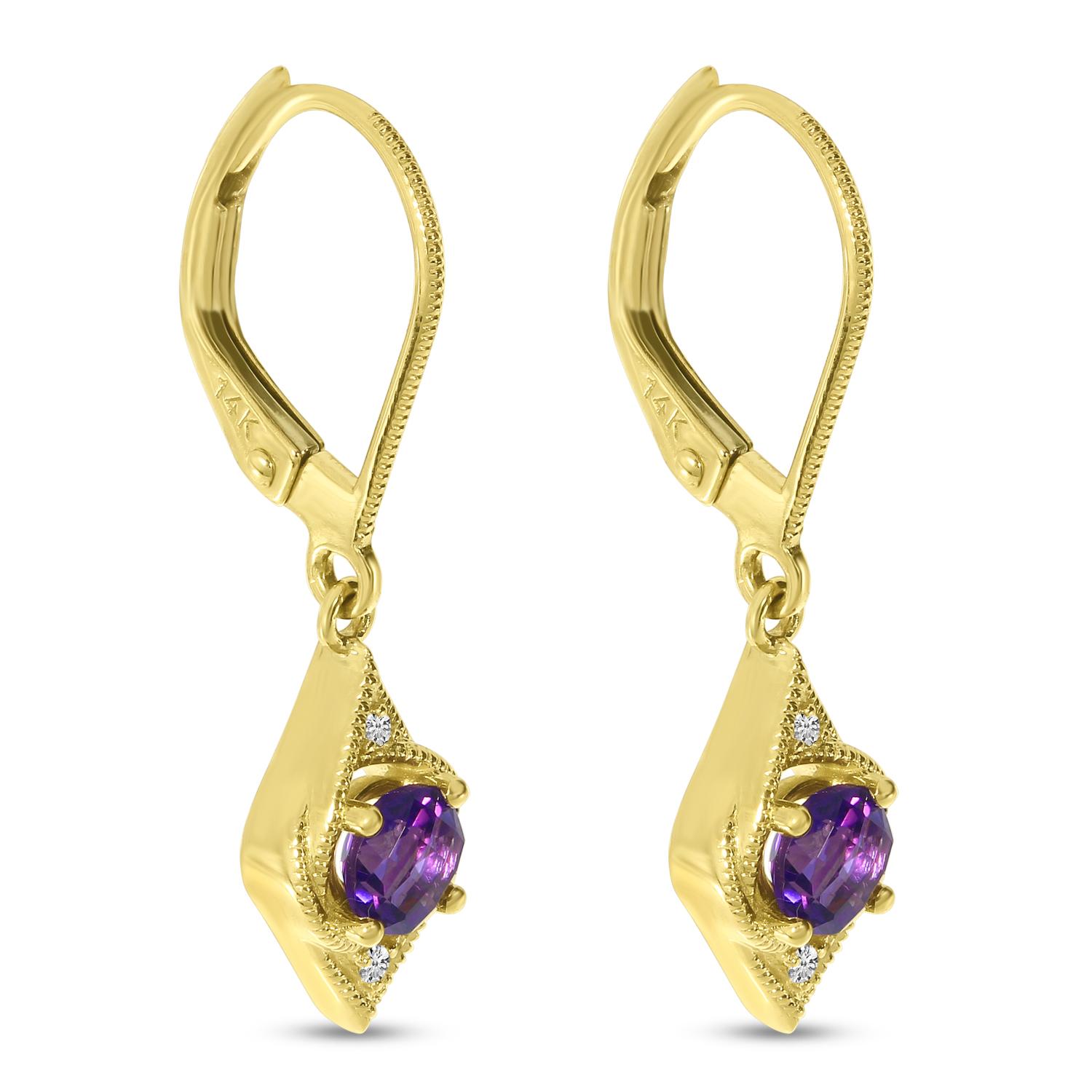 14K Yellow Gold Round Amethyst Filigree Drop Leverback Earrings