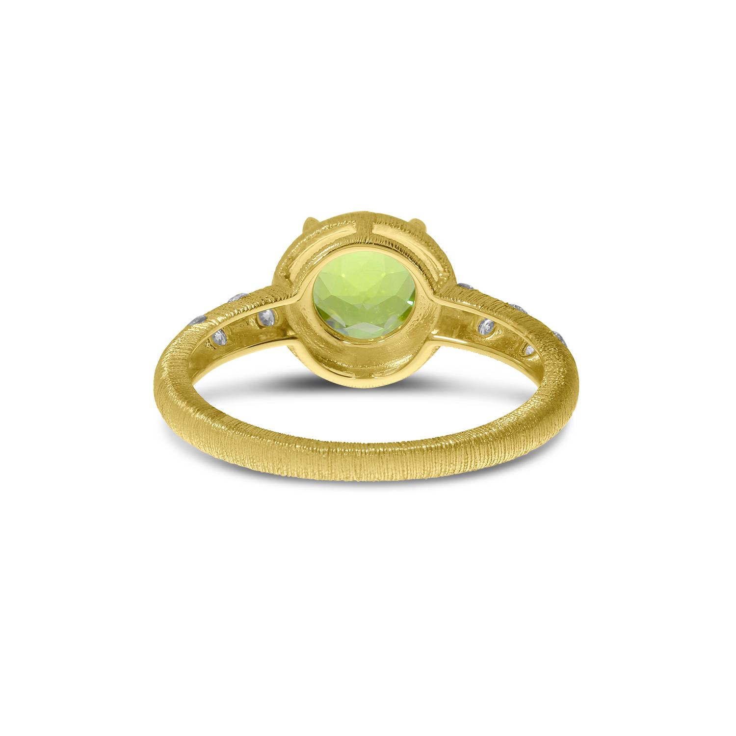14K Yellow Gold Round Peridot and Diamond Satin Band Ring