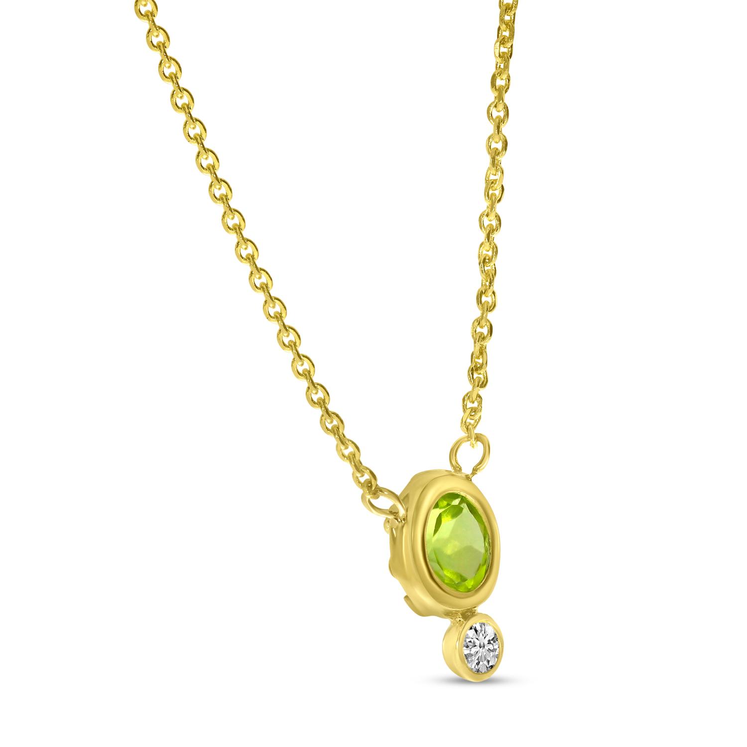 14K Yellow Gold Round Peridot with Diamond Birthstone Necklace