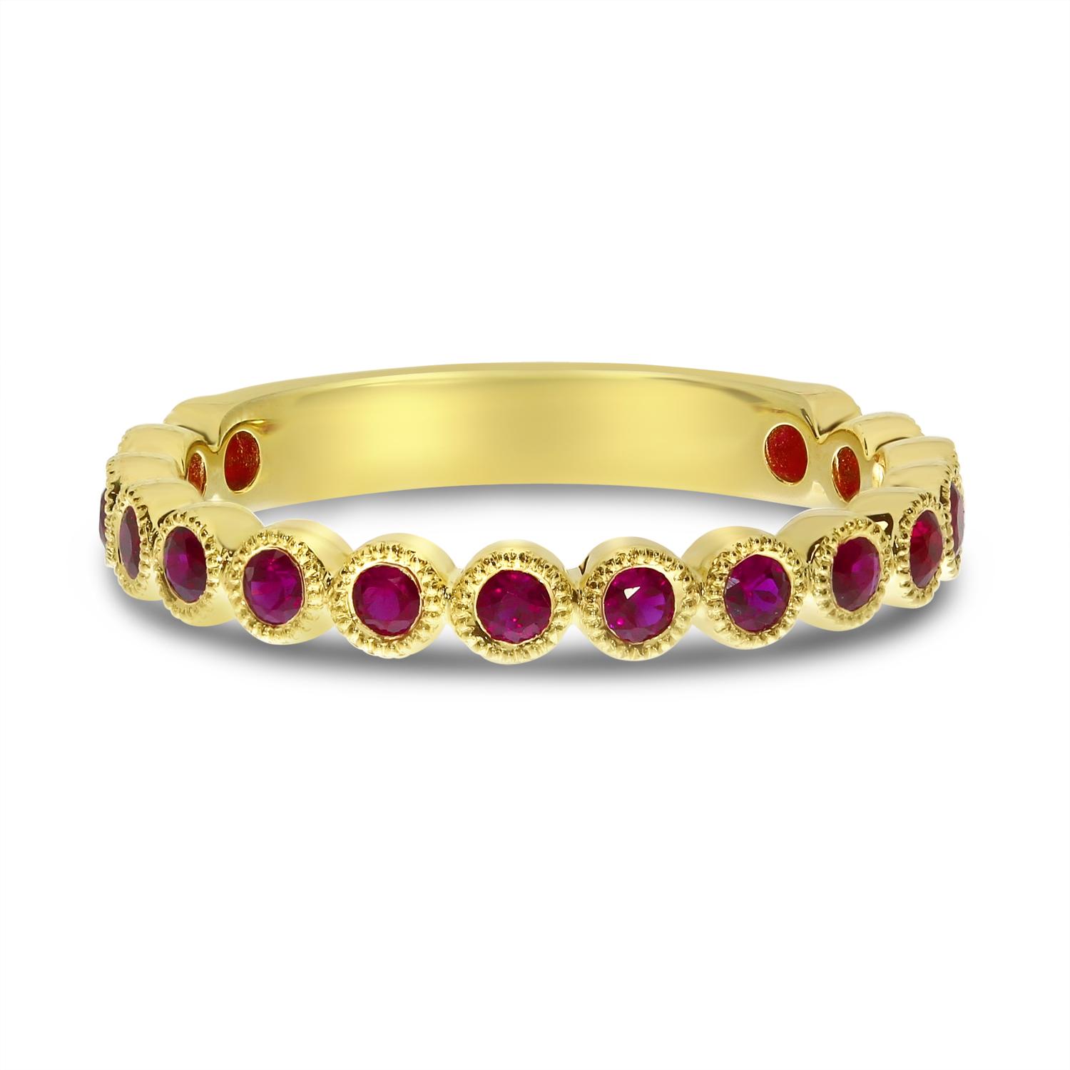 14K Yellow Gold Round Ruby Millgrain Bezel Band