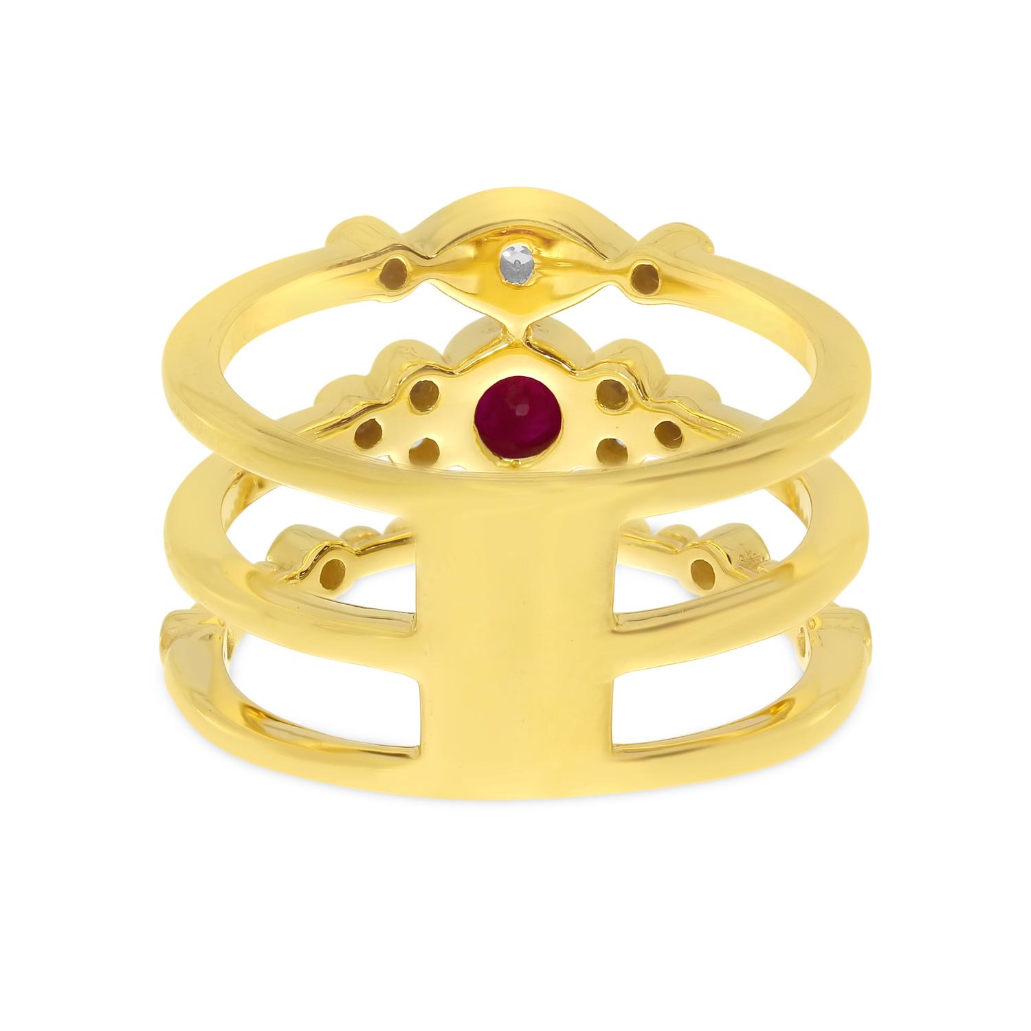 14K Yellow Gold 4 mm Round Ruby and Diamond 3 Row Ring Stack