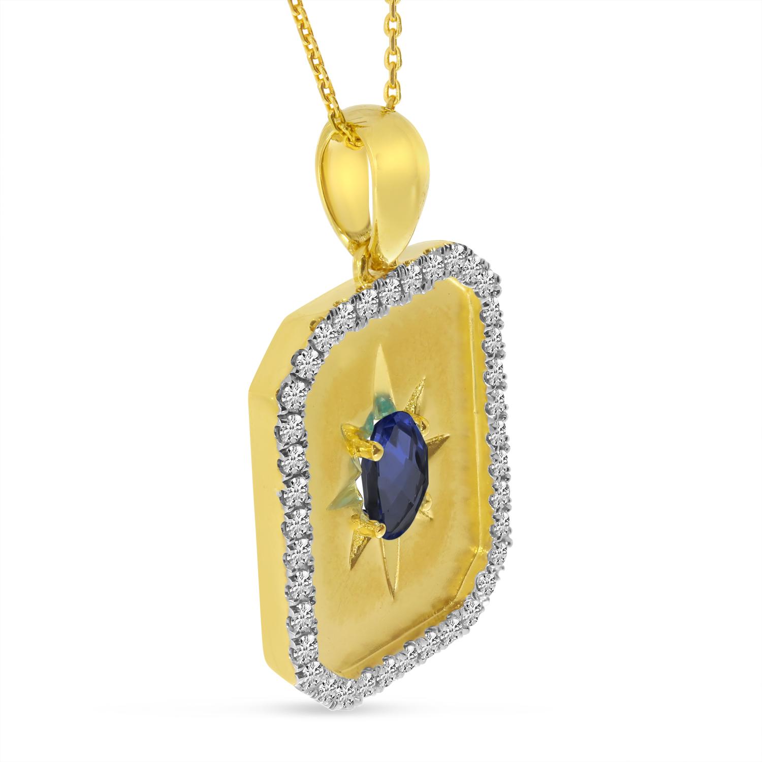 14K Yellow Gold Sapphire and Diamond Burst Medallion Pendant
