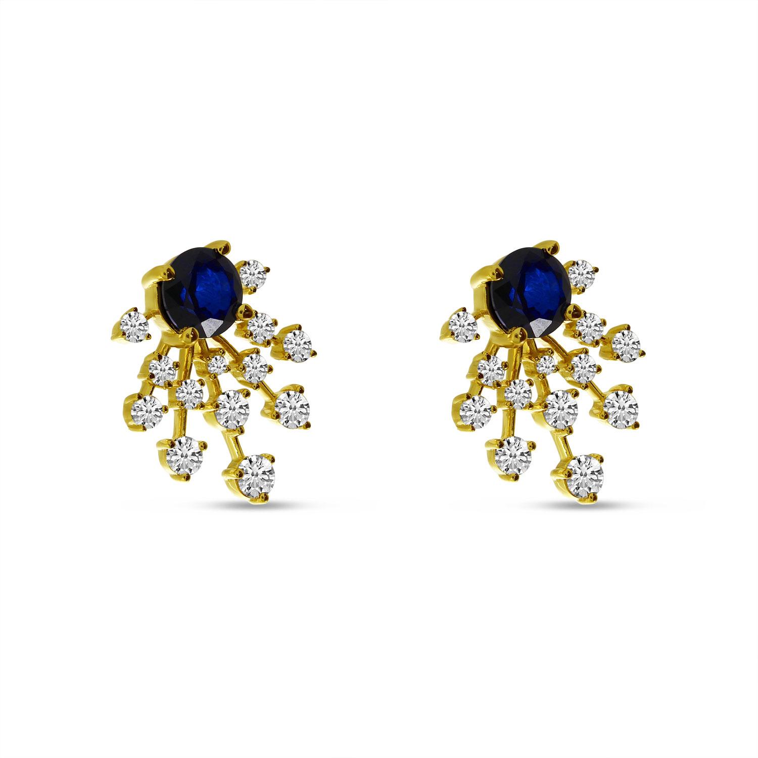 14K Yellow Gold Sapphire and Diamond Burst Precious Stud Earrings