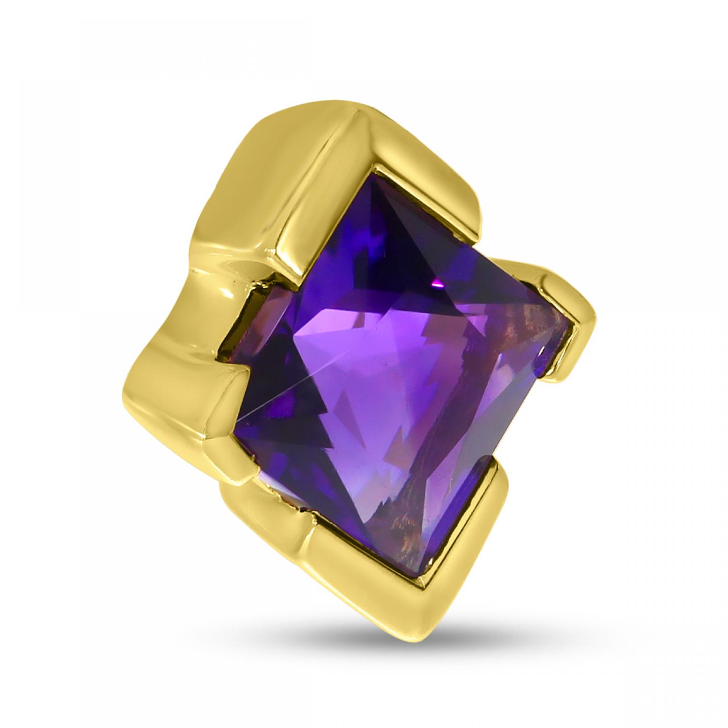 14K Yellow Gold Solitaire Princess Amethyst Necklace
